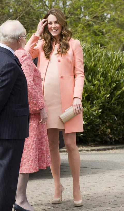 Kate wore a £380.00 peach coloured cotton twill coat by Paris designer Tara Jarmon coat and matching coloured dress believed to have been designed by an independent dress maker.
