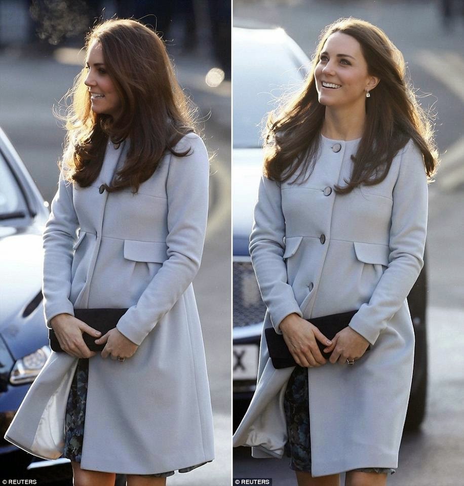 Style File: For today's engagements in Kensington, the Duchess of Cambridge wore a new 'Natasha' cashmere blend coat and a new 'Florrie' floral print dress, both from Seraphine Maternity's